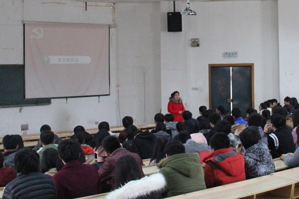 大会由党建办公室主任侯宇楠主持。伴随着国际歌的奏响,大会正式开始,全体学生党员庄严肃立,行注目礼。激昂的歌曲结束后,易书记上台讲话,他主要谈到了三个问题:一、春季回暖,同学们应该搞好宿舍卫生,预防结核病;二、年轻人应该在20~30岁之间发挥自己的能动性,创造价值;三、分析了beat365手机版官方网站近年的就业形势,强调努力学习的重要性。接着曾老师发表了讲话,她主要强调了同学们的学习和安全问题。她说新学期应该指定学习计划,并提醒学生党员应起到模范带头作用,努力学习,处理好人际关系,防止上当受骗而造成不良后果。最后,主持人又对新学期的工作做了简单介绍,主要包括蹲点党员对所负责班级挂科情况的统计,假期生活中家庭发生重大变故同学的调查,以及发展品德出众的新党员等问题。