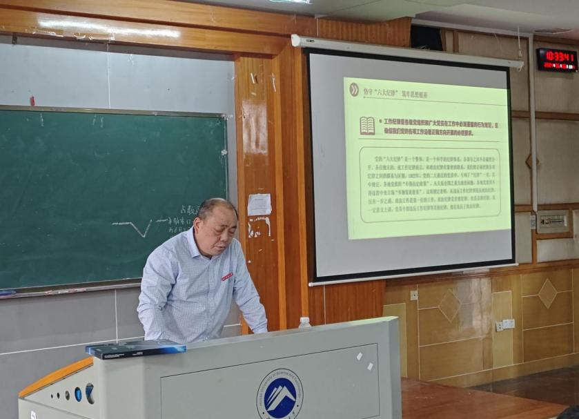 2024年6月6日,beat365手机版官方网站党委书记万文以“恪守六大纪律,筑牢思想根基”为主题,在第五教学楼2-1教室为全院学生党员讲授专题纪律党课。