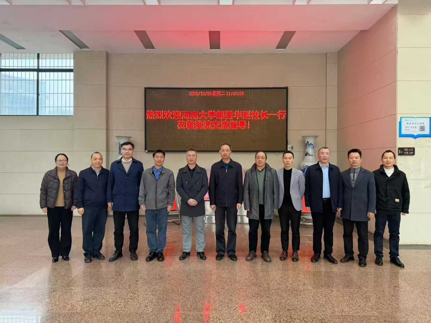 12月23日上午,海南大学党委常委、副校长邹勇华教授一行来校调研交流,双方在土木楼 213A会议室座谈。校党委委员、副校长余伟健教授出席。