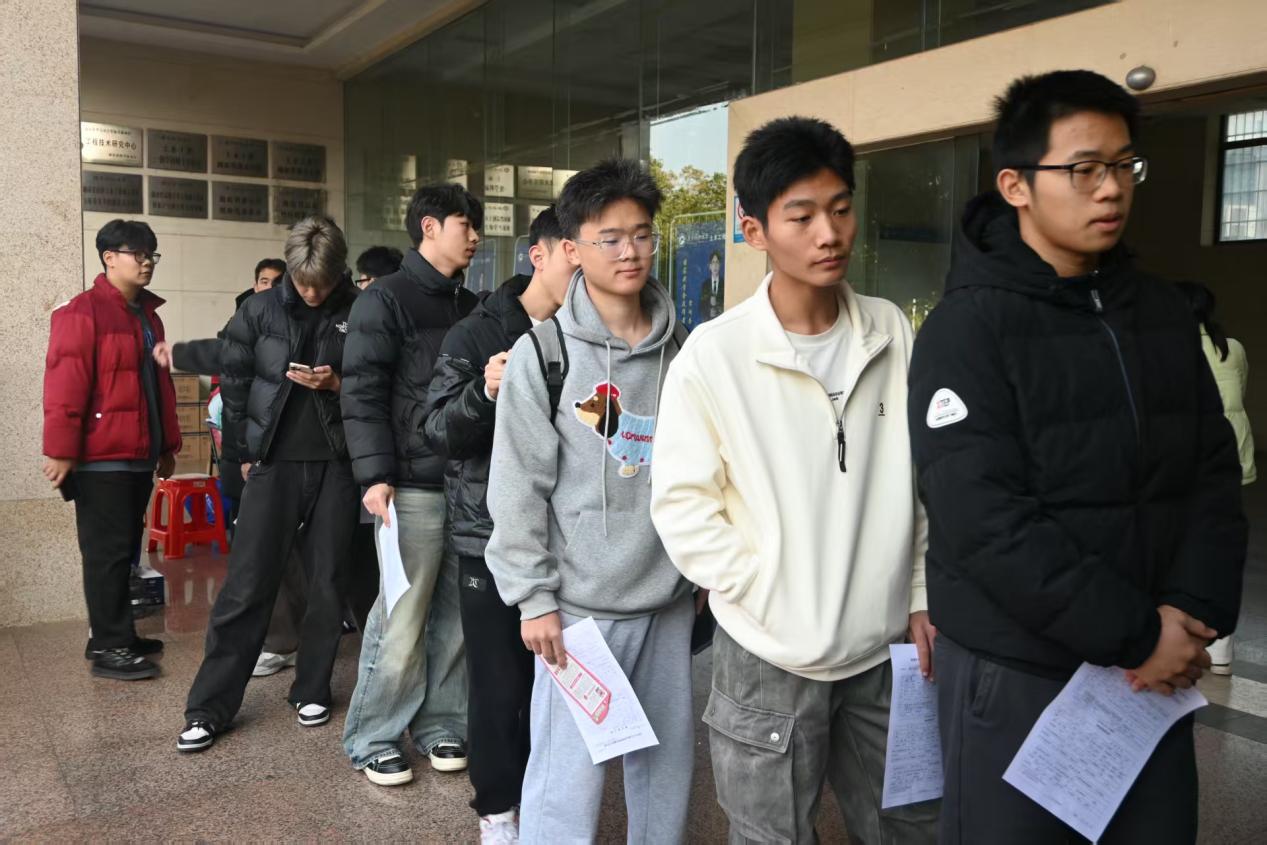▲学院学生有序排队等待献血